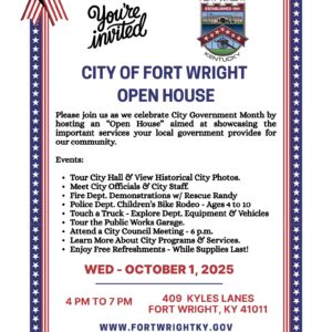 Named after Civil War hero Horatio Gouverneur Wright and situated on a hillside in Northern Kentucky with scenic views of Cincinnati, Ohio, Fort Wright has ready access to urban amenities while retaining suburban charm and warmth. Please consider this my personal invitation to visit our City anytime to experience all that we have to offer, I’m certain that like me, you’ll find Fort Wright is a wonderful place to live, work and play for all!